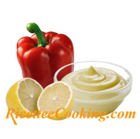 Versare il frullato di peperone in una ciotola ed unirvi la maionese, il concentrato di pomodoro, il succo di limone, il prezzemolo tritato finemente ed una spolverata di peperoncino; amalgamare bene tutti gli ingredienti e tenere al fresco fino al momento di servire.