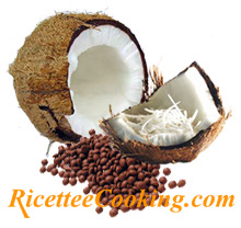Versare in una ciotola la farina di cocco, lo zucchero e la farina; amalgamare tutti gli ingredienti ed aggiungervi quindi le uova intere leggermente sbattute e le gocce di cioccolato.